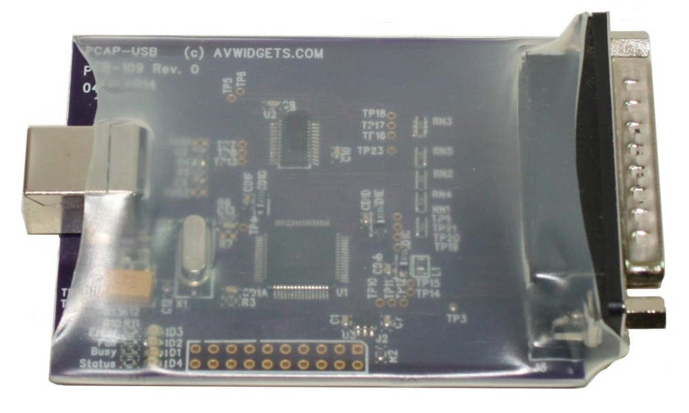 The AVW-PCAP has simple packaging that allows us to pass the savings along to you. Connection is easy, AVW-PCAP is designed to plug directly into a source device and emulate a printer and send the data to your host computer via standard USB. The USB connection appears as a serial port to Windows. Most test equipment that AVWidgets is familiar with has a female DB25 type connector which will directly connect to the AVW-PCAP (which has a male DB25 type connector). You may want to purchase a short DB25M to DB25F cable to more easily connect the AVW-PCAP.